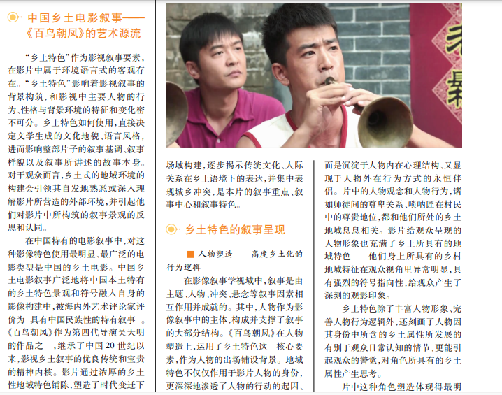《百鸟朝凤》作为我国第四代导演吴天明的最后一部作品,其乡土特色的使用是本片的一大特色,成为全片整体影像不可或缺的叙事基调。本文以原片的乡土特色作为视点出发,从人物、空间、景观塑造三大层面分析本片的叙事,最后指向影片的核心命题,探讨新世纪城市化浪潮下乡土挽歌的悲剧性。