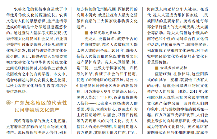 在中华民族发展中,优秀传统文化是生生不息的根源所在,而农耕文化则是优秀传统文化的灵魂。“十四五”期间,中宣部将“农耕文化传承保护工程” 纳入重点项目规划。由此看出,将农耕文化的传承、弘扬与学校教学工作开展有机结合具有重要意义。