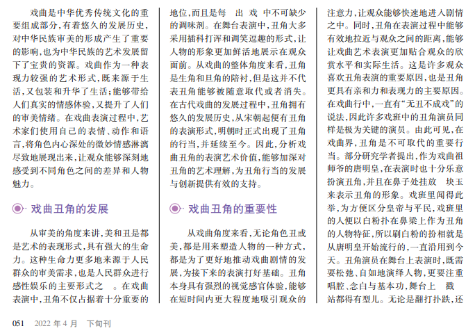 丑角作为戏曲中的重要行当之一,其在表演过程中更侧重于念白,不仅需要演员口齿清晰地念出台词,而且要配合相应的动作和表情,让角色形象能够更加鲜活地展示在观众面前。和其他行当相比,丑角的表演程式相对较为宽松,在表演过程中具有较大的自由度,能够让表演者更加充分地展示剧中人物形象。
