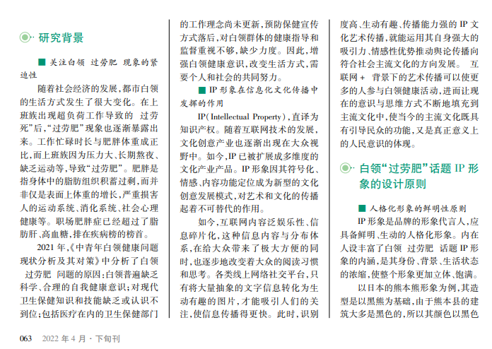 随着社会经济的发展,都市白领的生活方式发生了很大变化。在上班族出现超负荷工作导致的“过劳死”后,“过劳肥”现象也逐渐暴露出来。工作忙碌时长与肥胖体重成正比,而上班族因为压力大、长期熬夜、缺乏运动等,导致“过劳肥”。肥胖是指身体中的脂肪组织积蓄过剩,而并非仅是表面上体重的增长,严重损害人的运动系统、消化系统、社会心理健康等。职场肥胖症已经超过了脂肪肝、高血糖,排在疾病榜的榜首。