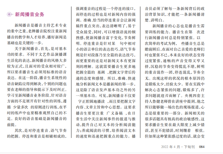 新闻播音是播音主持艺术专业的重中之重,老牌播音院校注重新闻播音的教学和人才培养,播好新闻是基础也是关键的一步。