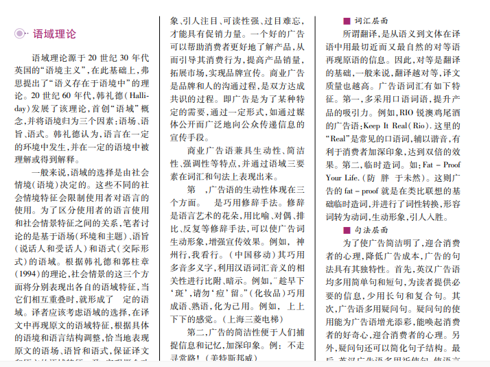 随着中国与世界的接触越来越频繁,越来越多的外国公司在中国开展业务。商业广告作为产品促销的有效手段之一,已成为人们生活的重要组成部分。广告翻译与企业形象、产品销售密切相关,广告翻译的好坏会直接影响宣传效果和销售。