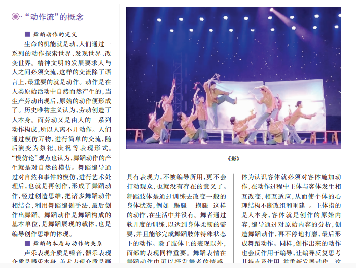 舞蹈既是情感交流的艺术体现,也是编导创作意识的体现。舞蹈本身的媒介就是肢体动作,编导的舞蹈思维对舞蹈动作的产生有决定性作用。“动作流”在舞蹈中无时无刻不存在着,是舞蹈思维与舞蹈动作的结合,需要编导从生活中提取,并根据创作需求整理,最后体现在动作上,具有传达编导艺术审美的重要使命。
