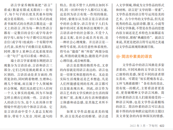 语言是人类社会交流 思想、沟通感情、传承文明 的重要工具,也是文学作品 塑造形象、反映社会生活、 表达思想感情的唯一媒介。 生活中,人们所使用的语言 风格多样,各具魅力,同样, 不同的文学作品中所使用 的语言风格呈现出“百花齐 放,百家争鸣”的风格。