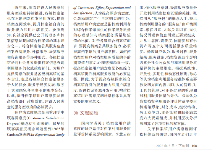 档案馆用户满意度是 指档案利用者对档案服务 质量的心理感知与档案服 务质量期望值的比值。对 于各级综合档案馆而言, 要提高公共服务能力,必 须提高档案馆用户满意 度。如何使档案馆用户的 事前期望值与事后心理感 知趋近一致,提高档案馆 用户满意度是必要途径。
