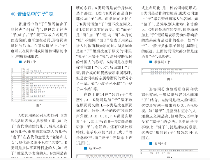 在现代汉语中,由 “子 " 缀构成的词非常常见,基本上都是甲级词汇中的词语。而在南昌方言中,“子 ” 缀构成的词在日常交际活动中的使用频率也非常高。