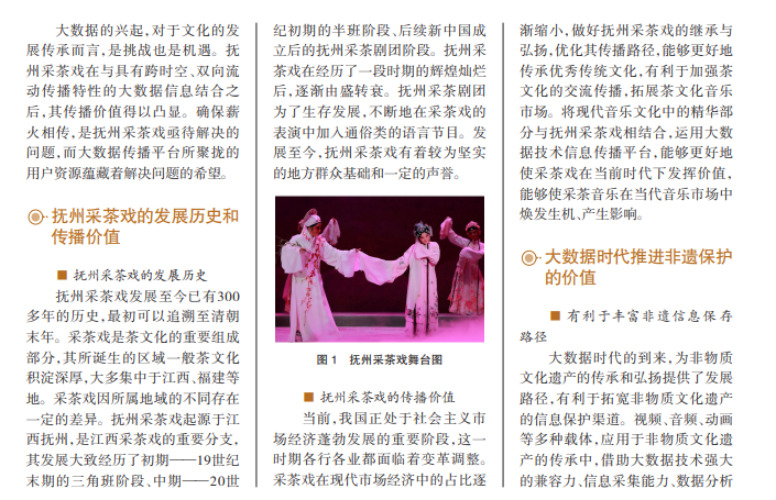非物质文化遗产的传 播是一种动态的、活态的 传播,主要以人为载体,以 口传心授的方式代际传承。 这种对人的极大依附性限 制影响着非物质文化遗产 的传播效果。随着大数据 时代的到来,传统的传播方 式很难适应当今急遽变化 的传播环境。