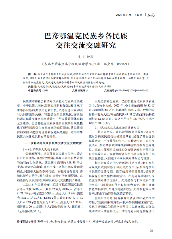 本文以巴彦鄂温克民族乡为例,研究民族交往交流交融对铸牢中华民族共同体意识的作用。调查发现,不同民族互动可以加深理解和团结,但全球化给民族文化的独特性和融合带来挑战。加强民族教育、文化传承和政策制定,是促进民族融合和铸牢中华民族共同体意识的关键。