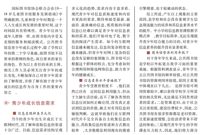 公共图书馆作为公共文化设施之一,其主要任务是服务大众,满足各类读者的阅读需求和服务需求。因此,公共图书馆面向青少年时,需要关注青少年对阅读活动的需求变化,并且根据他们的需求,创新服务模式,满足青少年不断变化的需求,让青少年养成来图书馆阅读的习惯,助力青少年成长。