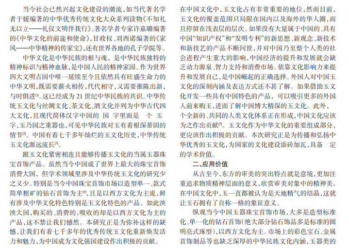 为了更好地传播优秀的中华玉文化,丰富现代首饰产品的内涵和提升其核心竞争力,笔者在不断探索和研究中,采用现代 3D打印技术,结合中华传统高超技艺,如花丝、景泰蓝等,融合儒家思想精髓,打造独具中华民族特色并能够传播优秀中华玉文化的产品,争取为传播正确的社会价值观和道德观作出一定的贡献。