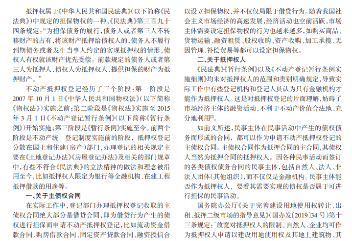 不动产抵押权登记是不动产登记中的主要登记类型之一,为市场经济主体便捷地融资和交易、充分发挥不动产的价值、保障债权人的合法利益提供了重要支撑。实践中,不动产抵押权登记的相关规定难以详尽,以及不动产登记人员的不同理解,导致各登记机构在办理抵押权登记时的做法不尽相同。本文试着从四个方面分析不动产抵押权登记,以期解决实际工作中的一些问题。