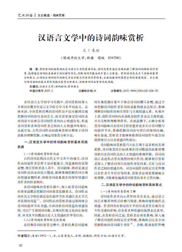 赏析诗词的意境韵味是汉语言文学的重要内容,诗词欣赏者通过准确把握了解诗词的特殊创作背景,能够透过诗词的表面语言组织描写形式,判断诗词中蕴含的丰富人文情感。赏析诗词存在多个层面的鉴赏分析要点,必须结合诗词创作的特定历史环境与作者经历等因素,全面把握诗词鉴赏分析的情感线索。本文探讨诗词韵味的基本赏析思路及鉴赏分析要点,创新诗词作品赏析实践思路。