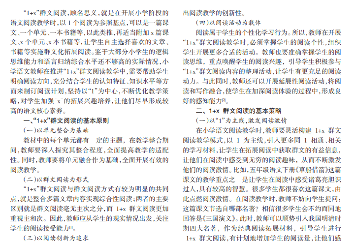 部编版中小学语文教科书温儒敏总主编指出,小学生的阅读应当向外延伸,他倡导语文教师采取“1+x”的办法,在统筹运用好学校统一的教材的基础上,关注学生的自主阅读,引导学生根据自身实际和学习兴趣深入开展个性化阅读。这样才有利于学生在巩固课堂所学知识的前提下,不断拓宽语文学习的渠道,厚植他们语文综合层面的整体素养。这正顺应了新课改的要求,是教育界广泛认同的拓展阅读模式。