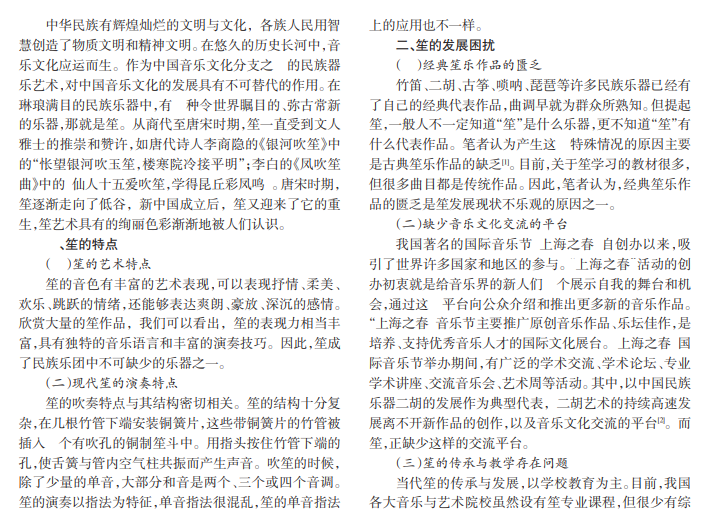 笙,是我国古代的簧管乐器,是吹管乐器中唯一能吹奏和声的乐器。新中国成立以后,有演奏家、笙制造者对笙做了改进,大大拓展了笙的发展空间。近代笙的发展进入了新的历史时期,出现了一大批优秀的笙演奏家。因为地区差异,历史悠久,笙在发展过程中形成的差异,阻碍了笙的进一步发展。