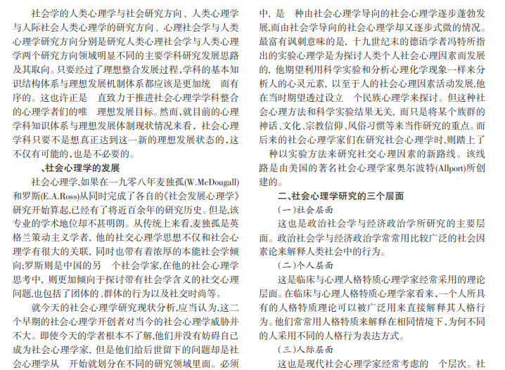 近年来,这样一种科学观点正在被社会广泛接受,即文化社会心理学研究是一门建立在社会学、心理学以及整个文化社会人类学三个母体基本学科基础上的独立边缘学科。这种科学观点不仅强调了它是整个文化社会人类学,同时也是整个社会学和心理学的母体基础学科之一。然而,目前对于整个文化人类研究在社会心理学研究中的重要意义尚且缺乏较为系统和深入细致的理论分析,这将直接成为关系到整个文化社会人类学及其作为社会心理学的母体基础学科之一是否具有充足科学理由的属性问题。本文通过社会心理学研究的三个层面、研究热潮对心理学的学术引领、论社会心理学的价值取向、社会学取向的社会心理学之现状这四个方面着重探讨社会心理学研究的多元学术取向。