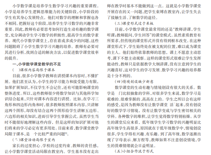 小学数学;生动有趣;问题;对策