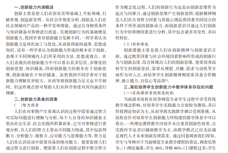 创新行为需要以实践作为支撑,以创新潜力、创新思维与创新能力作为基础。高校在培养创新人才过程中,首先需构建合理的实践教学体系,在人才培养方面采取多元化教育模式,让学生能够接触到更多先进、广阔的知识内容。本文针对创新能力内涵进行概述分析,并提出基于学生创新能力培养的教学体系构建与实践策略。