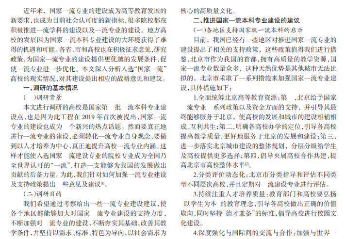 近年来,建设“双一流”专业已经成为国家教育的重要战略之一,建设一流专业的“双万计划”为高等教育的高质量发展提供了难得的机遇。在人才培养体系建设中,要力求灵活化与多样化。在人才培养目标上,要强调教师与学科之间的立体建设。在人才培养保障机制方面,强调内外协调,以学科创新理念为主导,以加强教师的综合素质及能力为必要手段,促进专业教师队伍建设。以多维协作理念发展国家一流本科专业建设。