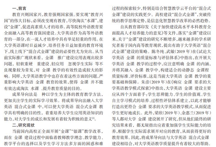 新时期的教育文件中明确提出“淘汰‘水课’、打造‘金课’”的要求,各高校应根据学生的实际情况梳理课程教学内容,适当增加和拓展课程内容的深度和难度,以更好地培养学生的实际能力,促进学生健康发展。基于此,高校针对大学英语课程提出了“混合式金课”的教学模式,且强调灵活运用成果导向法,从学生学习需求出发,着手打造高质量的高校英语教学。本文主要研究基于成果导向法的大学英语“混合式金课”教育策略,希望能够为大学英语“金课”教育开展提供帮助。
