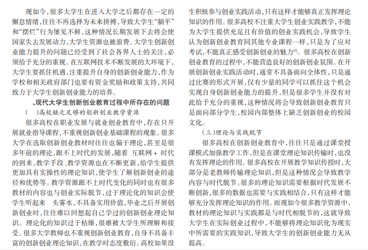 随着时代的不断进步,国家的发展越来越离不开高素质人才,因此各国都在积极进行教育改革,不断加大资金和技术投入,我国也应该紧跟时代发展步伐,加强人才的培养,从而促进我国不断向前发展。大学生群体是祖国的未来,应该加强大学生的创新创业能力,为国家发展提供源源不断的人才动力。本文主要分析大学生群体提高自身创新创业能力所存在的问题,并依据问题提出培养策略。