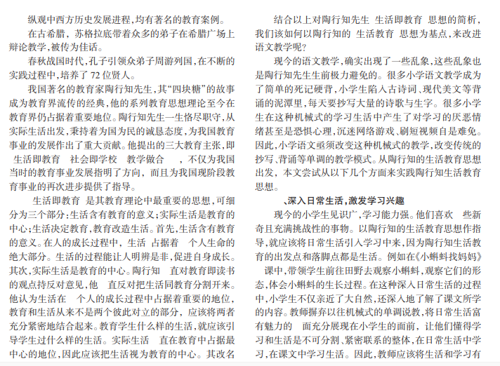 试析如何在小学语文教学中践行陶行知生活教育思想