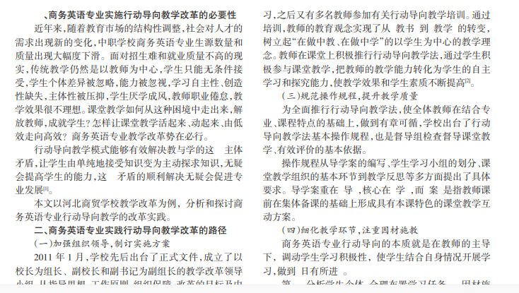 中职商务英语专业行动导向教学改革实践探索 ———以河北商贸学校为例