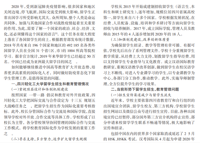 地方高校来华留学生教育管理问题分析与对策 ———以四川轻化工大学为例