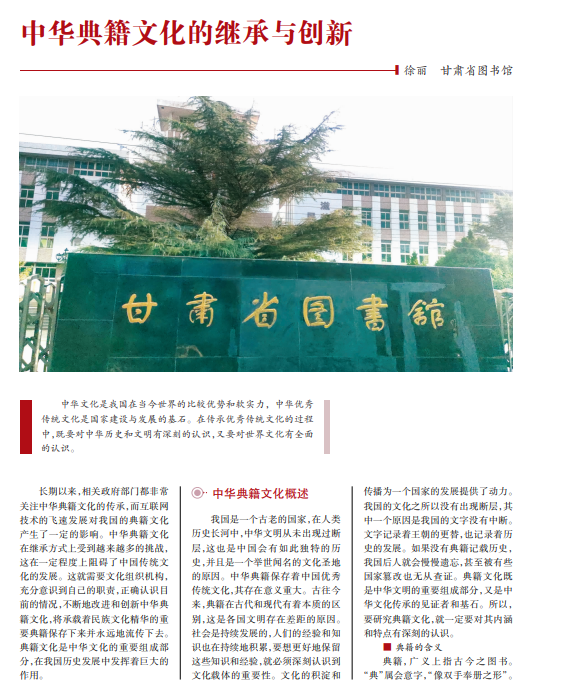 中华文化是我国在当今世界的比较优势和软实力,中华优秀 传统文化是国家建设与发展的基石。在传承优秀传统文化的过程 中,既要对中华历史和文明有深刻的认识,又要对世界文化有全面 的认识。