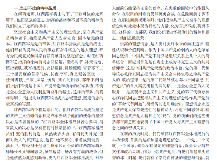 红西路军将士在血战河西的历程中写下了可歌可泣的光辉篇章,他们坚强的意志、崇高的品格和不屈不挠的精神为新时代中国共产党人树立了革命理想高于天和全心全意为人民服务的光辉榜样。