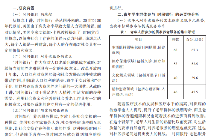 “时间银行”作为一种具有交换意义的社区养老模式,在各地探索中积累了丰富的实践经验,但在实践中存在一定的发展困境,缺乏多维团体的支持,特别是年轻群体的参与是其中一个重要因素。从社会交换的逻辑出发,引导素质更高、专业性强的年轻群体加入社区互助养老,对学生的自身能力提升、完善社区互助养老制度和推进居家养老服务供给侧结构性改革具有举足轻重的意义。