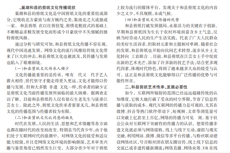 和县剪纸作为巢湖的非物质文化遗产之一,对于完善巢湖核心文化具有重要意义。本项目以旅游经济为切入点,以非遗剪纸文化为魂,结合时代背景利用互联网大数据打造独具特色的剪纸主题旅游基地,从文化发展、商业角度和周边宣传三方面分别提出具体策略。