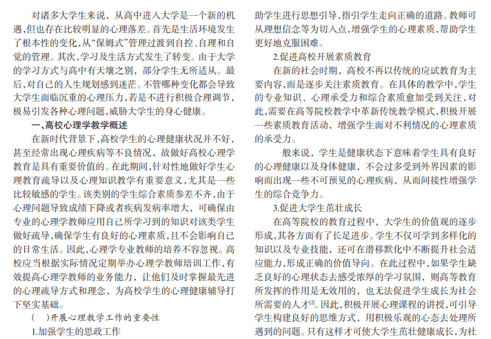 现阶段,高校校园中有很多学生存在各种各样的心理问题,令人痛心的事故时有发生。高校教育过程中对学生的心理健康教育比较重视,甚至还出台了一些新的应用型举措。基于此,大部分高校都积极采取多样化措施对大学生进行心理健康教育,但在实施过程中仍面临着较多不足之处。本文就这些问题展开详细论述,并提出了几种优化大学生心理素质的途径。