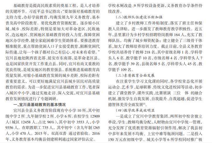系统推进宜川县基础教育高质量发展,对缩小城乡差距、校际差距,更好地满足城乡居民对高质量教育的需求有着重要意义。针对宜川县基础教育中存在的问题,笔者建议从深化教育集团引领作用、解决学校经费不足问题、加快学校基础设施建设、解决教师人数不足问题、不断强化师资队伍建设、加大校园周边环境整治等方面入手,全面推进宜川县基础教育工作,办好让宜川人民满意的教育。