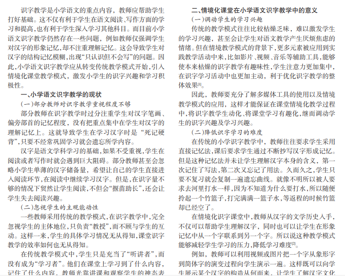 小学语文情境化课堂识字教学应用探究