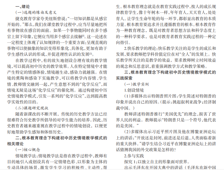 根本教育理念;情景教学法;初中历史