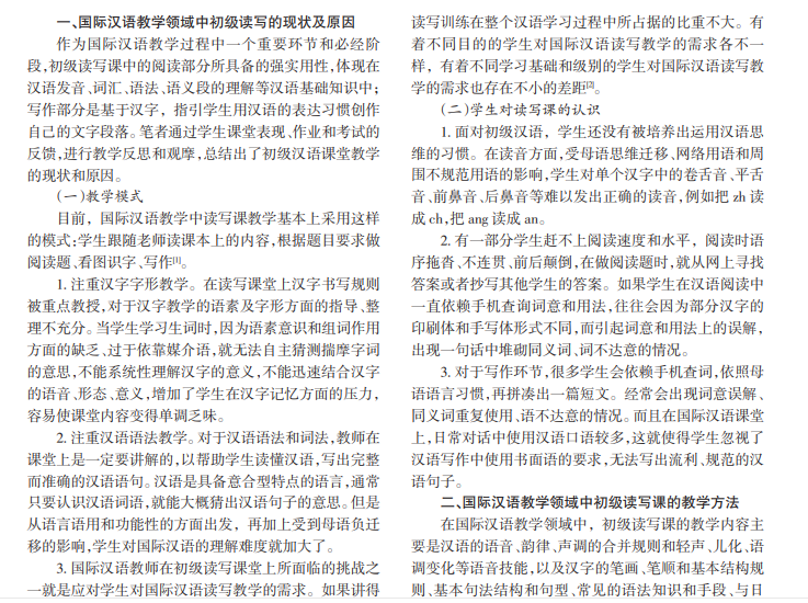关于国际汉语教学领域中初级读写课教学方法的探析