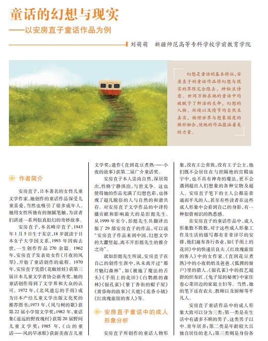 幻想是童话的基本特征,安 房直子的童话作品将幻想与现 实的界限完全隐去,神秘且诗 意。世间万物在她的童话中均 被赋予了鲜活的生命,幻想的 人物、环境以及情节均自然且 真实,物理世界与想象国度的 微妙融合,使她的作品蕴涵着美 的力量。