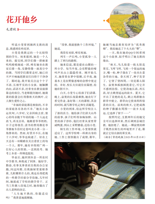 听说小斐要到湘西支教的消 息,我感到有些诧异。