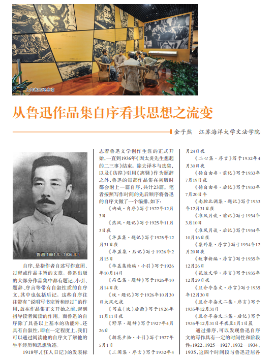 自序,是指作者自述写作意图、 过程或作品主旨的文章。鲁迅出版 的大部分作品集中都有题记、小引、 题辞、序言等带有自叙性质的自序 文,其中也包括后记。这些自序往 往带有“说明写书宗旨和经过”的作 用,放在作品集正文开始之前,起到 指导读者阅读的作用。而鲁迅的自 序除了具备以上基本的功能外,还 具有自叙性,即在一定程度上,我们 可以通过阅读他的自序文了解他的 生平经历和思想轨迹。