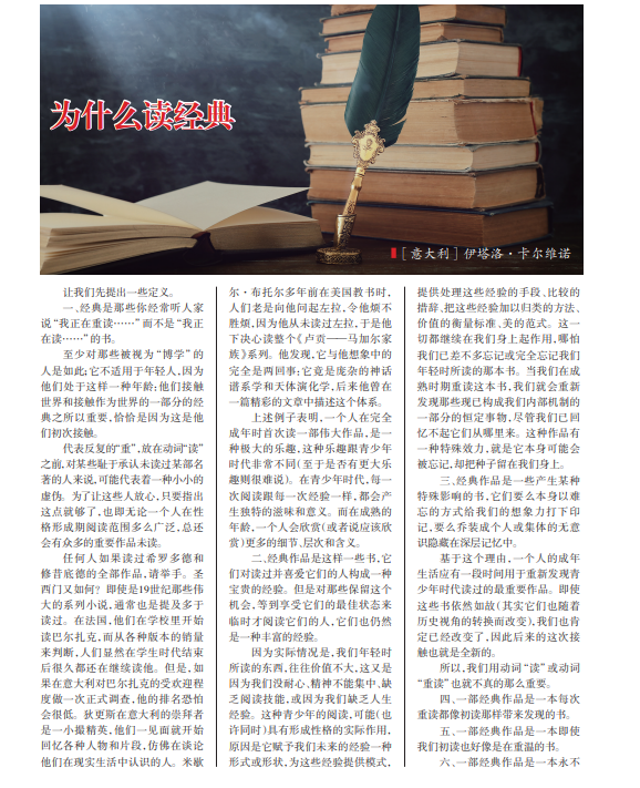 一、经典是那些你经常听人家 说“我正在重读……”而不是“我正 在读……”的书。