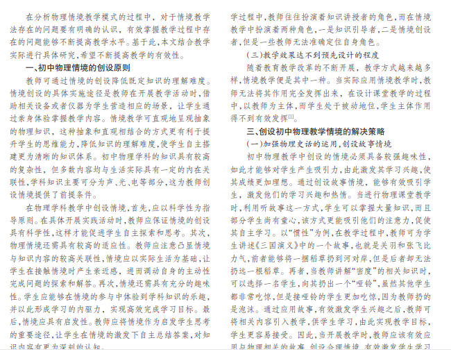 初中物理教学情境创设存在的问题及对策