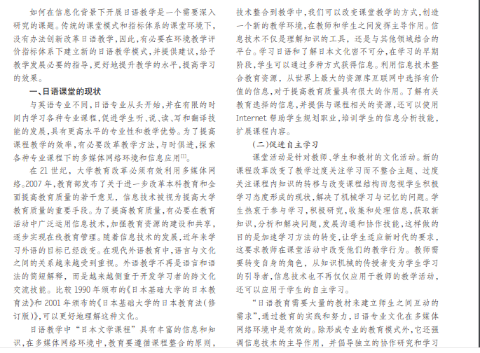 在新时代背景下,传统的教学模式有一定的局限性,如何利用信息化技术完成新课程教学改革,已成为职 业院校日语教学的重要目标。