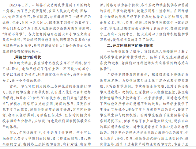 网络授课;课堂学习;教学资源;教师角色网络授课;课堂学习;教学资源;教师角色