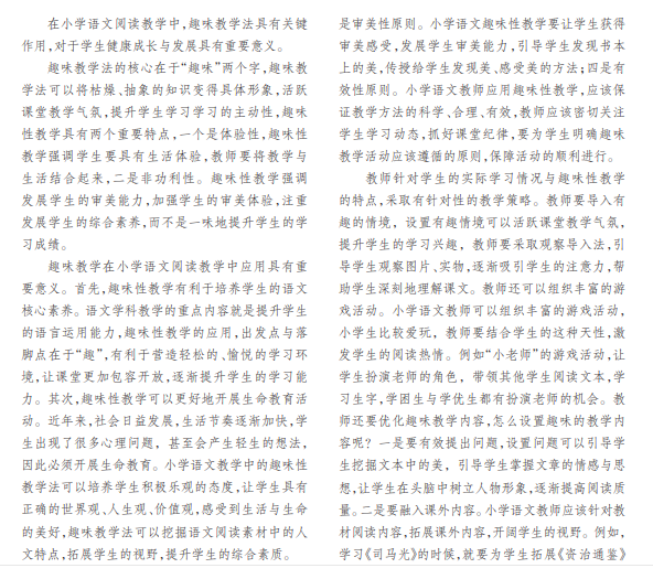 趣味教学法在小学语文阅读教学中的应用