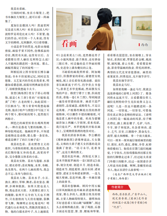 我喜欢看画。