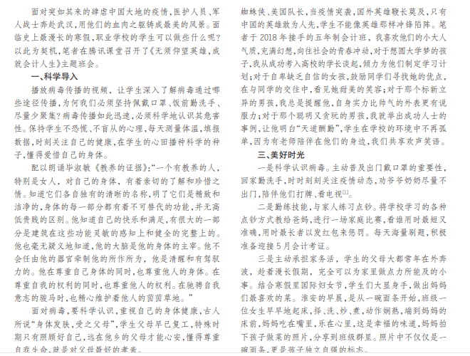 结合全国肆虐的疫情,切实开展有关坚守的主题班会,培养职业学生使命感和责任感,做好平凡之事,成就 会计人生。