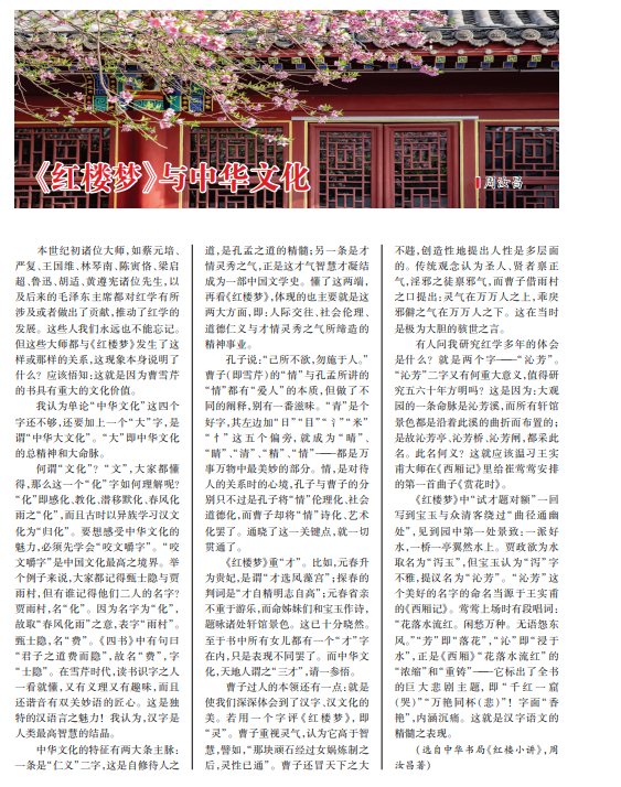 本世纪初诸位大师,如蔡元培、 严复、王国维、林琴南、陈寅恪、梁启 超、鲁迅、胡适、黄遵宪诸位先生,以 及后来的毛泽东主席都对红学有所 涉及或者做出了贡献,推动了红学的 发展。这些人我们永远也不能忘记。 但这些大师都与《红楼梦》发生了这 样或那样的关系,这现象本身说明了 什么?应该悟知:这就是因为曹雪芹 的书具有重大的文化价值。