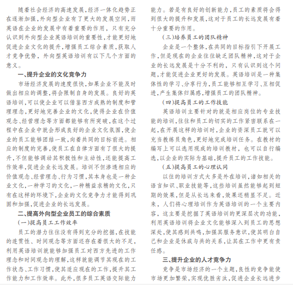 英语培训对外向型企业发展的重要意义
