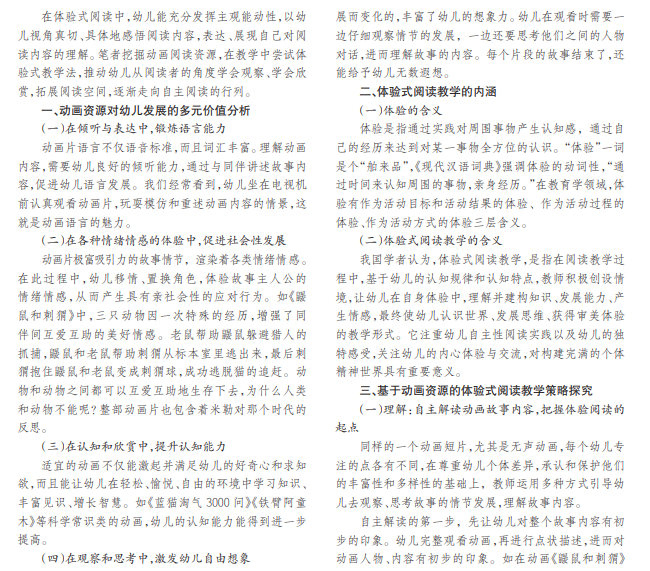 基于动画资源的体验式阅读教学策略探究 ——以大班阅读活动《鼹鼠和刺猬》为例