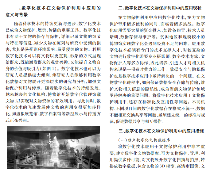 文物作为历史见证者,承载着丰富的文化与历史价值。受传统保护与展示方式的限制,不少文物 面临损毁、流失、不能完整陈列的困境。数字化技术以三维重建、虚拟现实为手段,实现对文物的全方位保护与 展示,实现文化遗产的永久保存与向公众开放,实现文化遗产的数字化传承与普及。